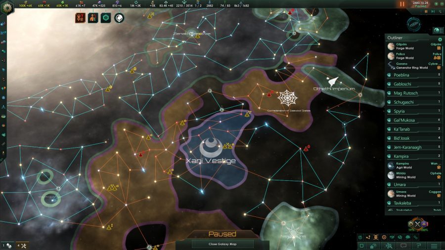 앞서 언급했듯이 영토는 우주 전초기지를 건설해야만 확장됩니다. 2.0 Cherryh 업데이트 이후 하이퍼레인 여행이 유일한 여행 형태라는 점도 언급할 가치가 있습니다.