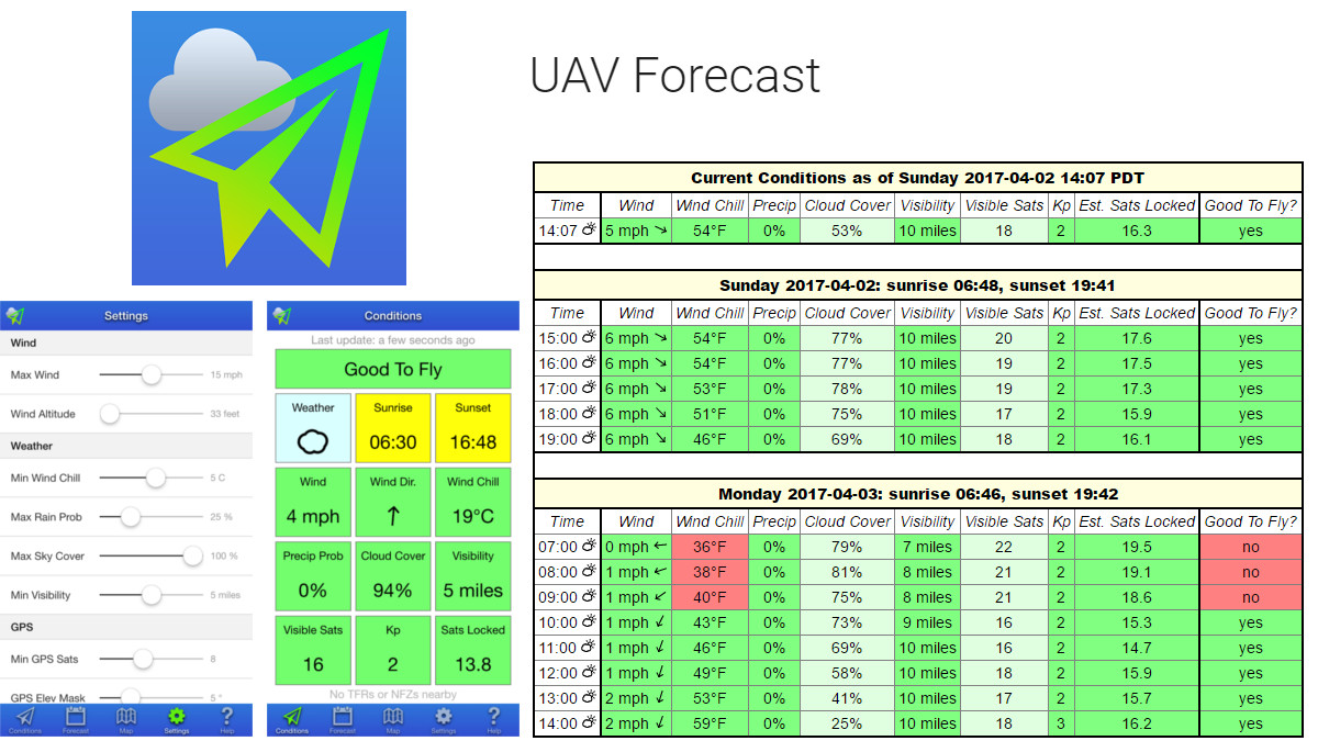 거의 전적으로 날씨에 초점을 맞춘 UAV Forecast는 비행하기에 안전한지 판단하는 데 도움이 되는 자세한 바람 및 날씨 정보를 제공하기 위해 노력합니다. 앱에 드론의 매개변수를 알려주면 오늘이 비행할 날인지 여부를 빠르게 표시할 수 있습니다. 풍속 및 풍향, 체감 온도 및 온도, 운량, 가시성 등 다양한 조종 정보가 제공됩니다. 다른 앱에 뒤지지 않기 위해 UAV Forecast는 눈에 보이는 비행 금지 구역과의 매핑도 제공합니다. 날씨 요구 사항을 확인하십시오.