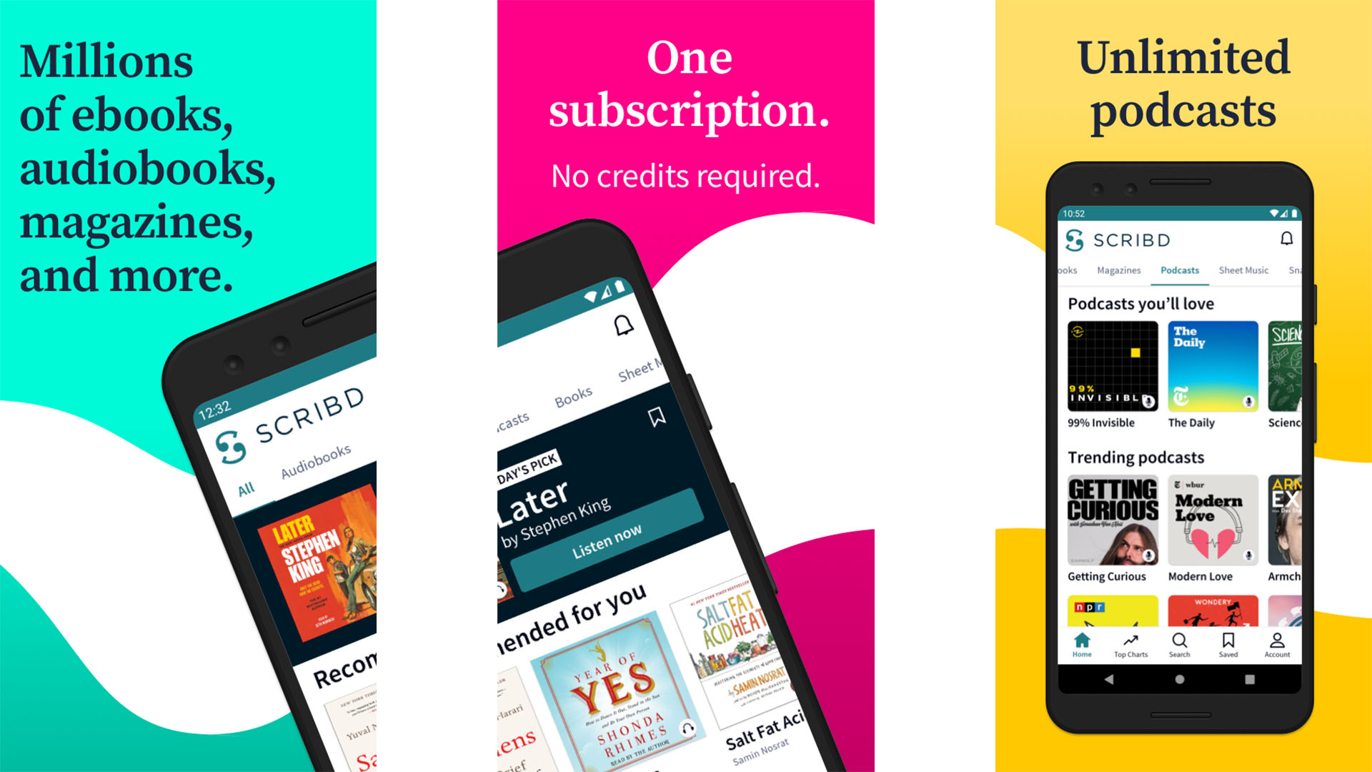 Scribd는 상당한 장점이 있는 전자책 및 오디오북 플랫폼입니다. 구독 비용은 대부분의 경쟁사보다 저렴하며 비용 대비 더 많은 이점을 얻을 수 있습니다. 또한 슬립 타이머와 같은 합리적인 양의 재생 컨트롤과 함께 백만 개가 넘는 타이틀 컬렉션을 자랑합니다. 오프라인 다운로드 지원과 같은 일반적인 기능도 제공됩니다. 많은 기능이 전자책용이지만 오디오북은 완벽하게 작동합니다. Kobo와 마찬가지로 이것은 Kindle 및 Google Play 북에 대한 적절한 대안입니다.