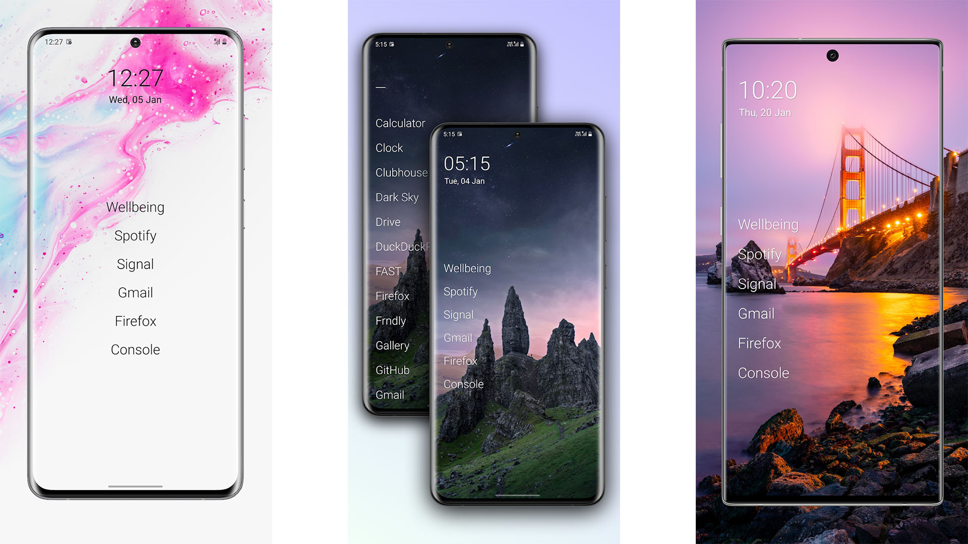 Olauncher는 이 목록에 있는 최신 Android 런처 앱 중 하나입니다. 최소한의 UI, 평균보다 적은 사용자 정의 및 산만하지 않은 사용을 자랑합니다. 앱은 경험을 최소화하기 위해 아이콘과 같은 일반적인 그래픽 요소를 의도적으로 생략합니다. 배경 화면을 설정하고 몇 가지 사용자 정의를 수행할 수 있지만 이는 일종의 아이디어입니다. 설치하고 사용하면 방해가 되지 않습니다. 앱이 최신 버전이고 개발자가 여전히 새로운 기능을 추가하고 있습니다. 그래도 이것은 최근 메모리에서 더 나은 최소 스타일 실행기 중 하나입니다.