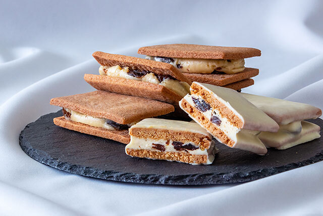 굵은 건포도를 프랑스산 럼주에 담그고 버터 크림 속에 듬뿍 섞은 치진야 총본점만의 건포도 샌드. 화려한 향기와 경쾌한 식감은 바로 "프리미엄". 고소한 쿠키 원단의 "플레인"과 화이트 초콜릿으로 코팅한 "화이트 초콜렛"을 각각 5 개씩 즐길 수 있습니다.