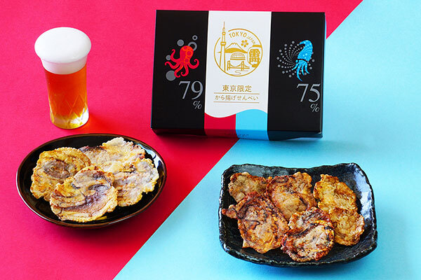 후쿠이·에치젠의 가게가 만드는 「카라 튀김 센베이」는 신선한 해물을 모습 그대로 고소하게 튀긴 일품. 맥주나 와인과의 궁합은 발군으로, 달콤한 것이 서투른 분에게의 선물로 추천. 대인기의 문어, 달콤한 오징어 감염 달레의 2 종류가 들어간, 도쿄 한정의 세트입니다.