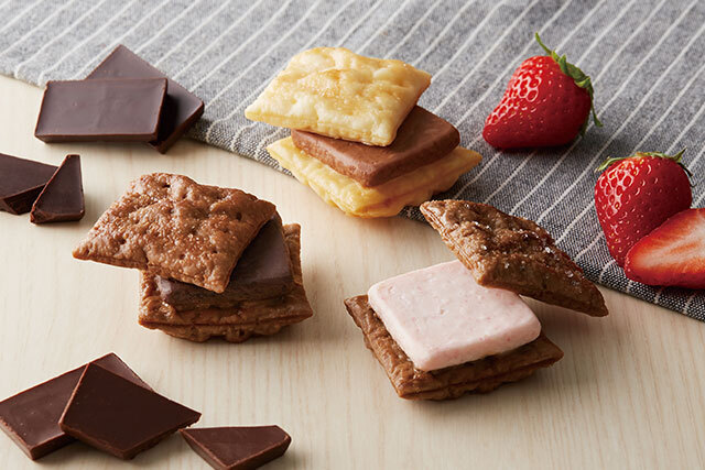 벨기에산 쿠벨 초콜릿을 블렌드한 구운 초콜렛을 432층의 깔끔한 파이 원단으로 샌드. 우유, 비터, 딸기의 3개의 스테디셀러 풍미를 어소트한 <레드>에 가세해, 계절 한정으로 3종의 풍미들이의 <블루>와 <네이비> ※ , 6종의 풍미들이의 <브라운>도 전개.