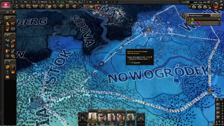 - 보급 맵 모드에서 보급 거점을 클릭하면 3개의 버튼이 나타납니다. 그 중 하나는 서울과 수도 사이의 전체 철도망을 같은 수준으로 업그레이드하는 것입니다.