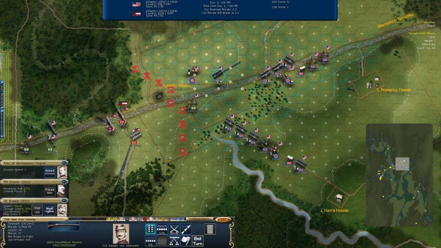 전쟁 내내 개별 여단과 그들의 장교를 따라갈 수 있는 능력은 내가 이 게임을 하고 나서 그리워하게 된 것 중 하나입니다. 전쟁 첫해에 만든 부대가 적의 탄환에 의해 완전히 해체되는 것을 보는 것은 가슴 아픈 일이지만, 하급 대위에서 소장에 이르는 장교의 경력 경로를 따라가는 것은 게임을 하면서 거의 얻을 수 없는 자부심을 가져옵니다. 훈련과 복장을 관리할 수 있을 뿐만 아니라 각 부대의 이름을 지정할 수 있으므로 개인 수준에서 군대와 쉽게 연결할 수 있습니다.