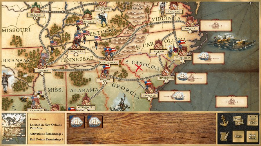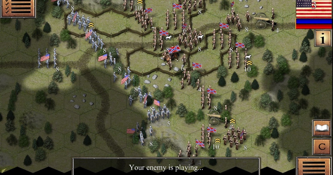 HexWar의 매력적인 Civil War: 186x 시리즈는 Android 및 iOS에서 PC로 점프하여 리뷰어 Jeff Renaud가 "빠른 히트" 전쟁 게임이라고 불렀습니다. 1863년의 다양한 전투(또는 전쟁의 다른 해에는 모든 전투가 등장하는 컴패니언 게임이 있습니다!)에서 가져온 시나리오로 쉽게 뛰어들 수 있으며, 전투는 자주 첫 턴에 시작됩니다.