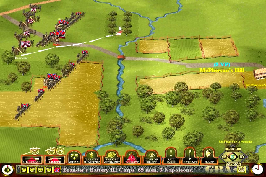 90년대 후반 게임. 시드 마이어의 게티스버그! 특히 당시 최고의 전략/전쟁 게임 중 하나로 간주되었으며 이후 수십 년 동안 출시된 많은 ACW 및 Gettysburg 테마 게임의 벤치마크 대상이었습니다.