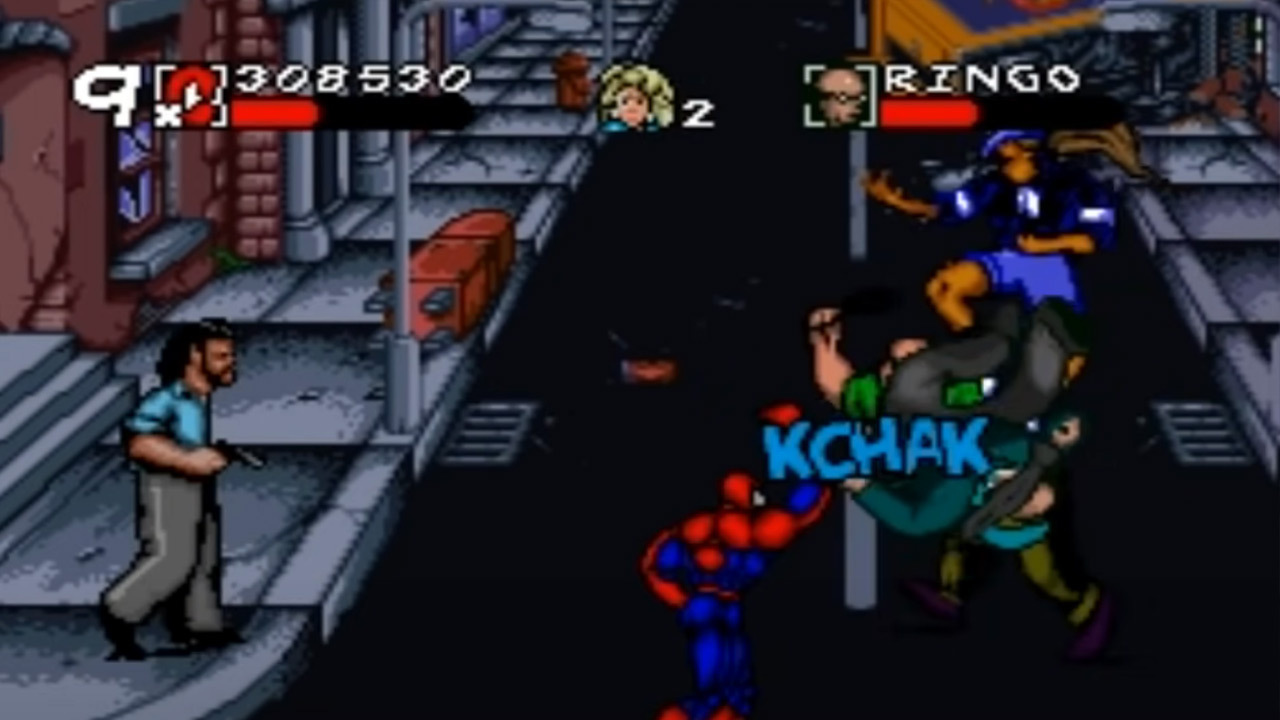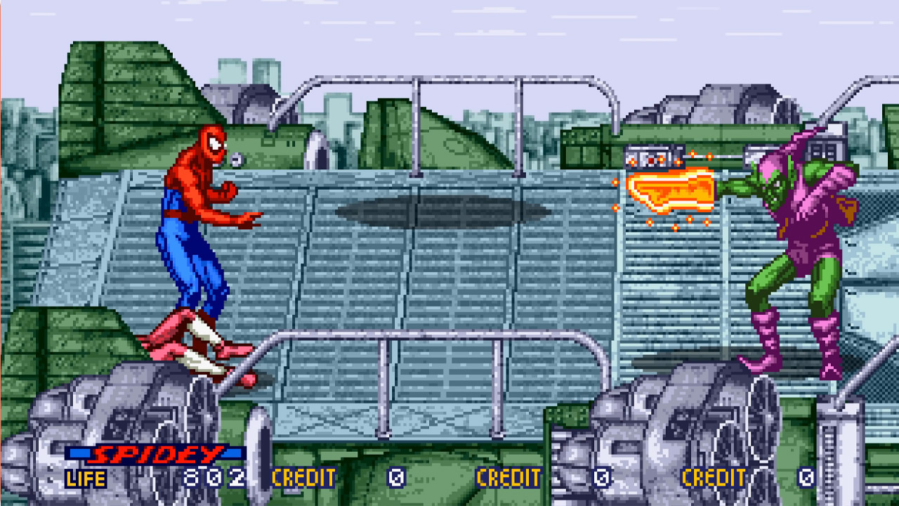 Sega의 이 격투 아케이드 게임은 Spider-Man을 주요 캐릭터로 자랑하지만 예상보다 훨씬 더 Spidey 가족 게임입니다. 4인용 아케이드에서는 Black Cat, Sub-Mariner 및 Hawkeye와 함께 wallcrawler 자신을 선택할 수 있습니다. 이것은 Spidey와 Black Cat이 근접 공격에 더 집중하고 Hawkeye와 Sub-Mariner가 원거리 공격에 의존하기 때문에 이동 세트에 약간의 다양성을 도입했습니다. 그것은 심지어 스파이더맨의 거미줄 던지기 능력을 활용하여 전장 위로 스윙하여 간격을 좁히거나 잼에서 벗어날 수 있도록 했습니다.