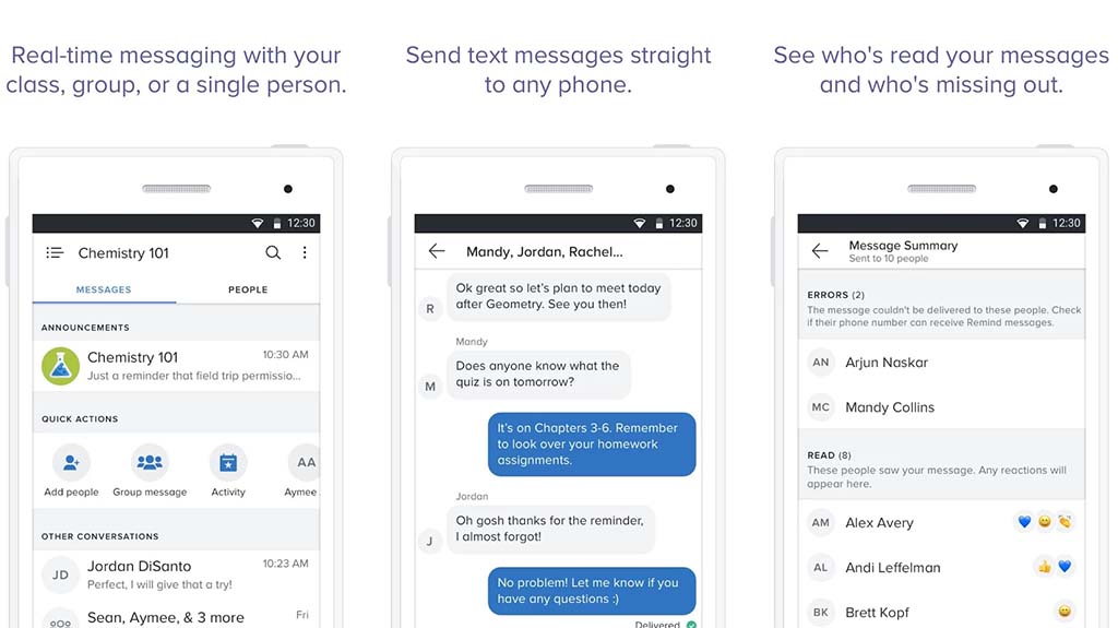 Remind(구 Remind101)는 커뮤니케이션 앱입니다. 커뮤니케이션을 목적으로 제작되었습니다. 교사는 모든 학생과 학부모에게 알리는 알림을 예약할 수 있습니다. 이렇게 하면 학생과 학부모에게 견학 허가서 서명, 과제 제출, 기타 활동 및 행사를 상기시키는 데 도움이 될 수 있습니다. 필요한 경우 학생이나 학부모에게 직접 연락할 수도 있습니다. 70개 언어를 지원합니다. 알림도 사용하기 매우 쉽습니다. 이것은 의사 소통을 원하지만 가상 교실에 참여하고 싶지 않은 교사에게 훌륭한 대안입니다. 필수 교사 앱 중 하나입니다.