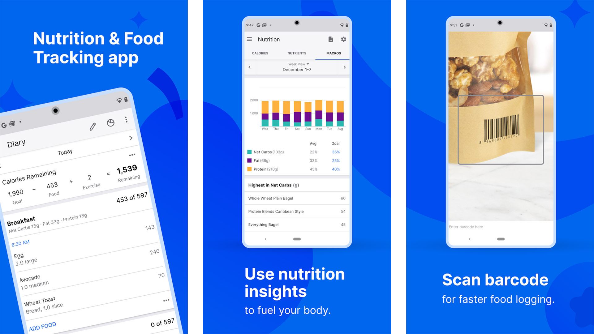 FatSecret의 칼로리 카운터는 이러한 다른 많은 앱보다 더 기본적입니다. 식단 일지가 포함되어 있어 먹은 음식과 소모한 칼로리를 기록할 수 있습니다. 또한 바코드 스캐너, 체중 추적기, 다이어트 캘린더, 음식의 영양가를 확인할 수 있는 음식 및 레스토랑을 찾을 수 있는 참조 가이드가 함께 제공됩니다. 레시피 아이디어뿐만 아니라 필요한 경우 위젯도 함께 제공됩니다. 또한 원하는 경우 더 많은 기능을 포함하는 선택적 구독으로 완전히 무료로 사용할 수 있습니다. 이 앱에는 Facebook 및 Google 로그인 기능도 함께 제공됩니다.