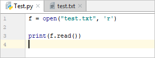 f = open(“test.txt”, ‘r’)