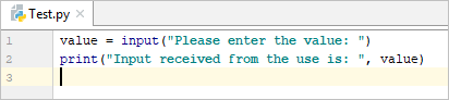 value = input(“Please enter the value: ”); print(“Input received from the user is: ”, value) |