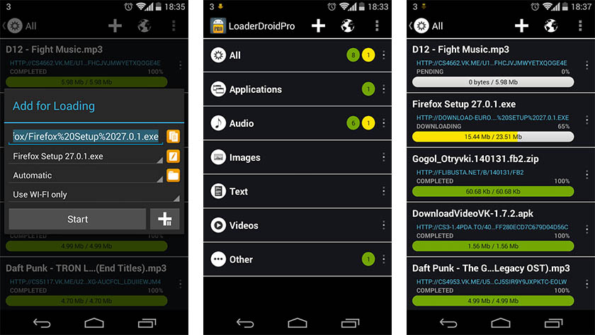 Loader Droid는 약간 오래되었지만, 좋은 안드로이드용 다운로드 관리자 중 하나입니다. UI는 약간 구식이지만 필요한 정보를 제공합니다. 또한 이 앱은 데이터에 연결할 때 다운로드를 자동으로 다시 시작하는 것과 같은 많은 작은 기능을 제공합니다. 일부 다른 기능에는 링크 시간 초과 시 링크 교체가 포함되며 다운로드별로 허용되는 연결을 정의할 수 있습니다. 따라서 Wi-Fi를 통해 한 파일을 다운로드하거나 4G를 통해 다른 파일을 다운로드할 수 있습니다.