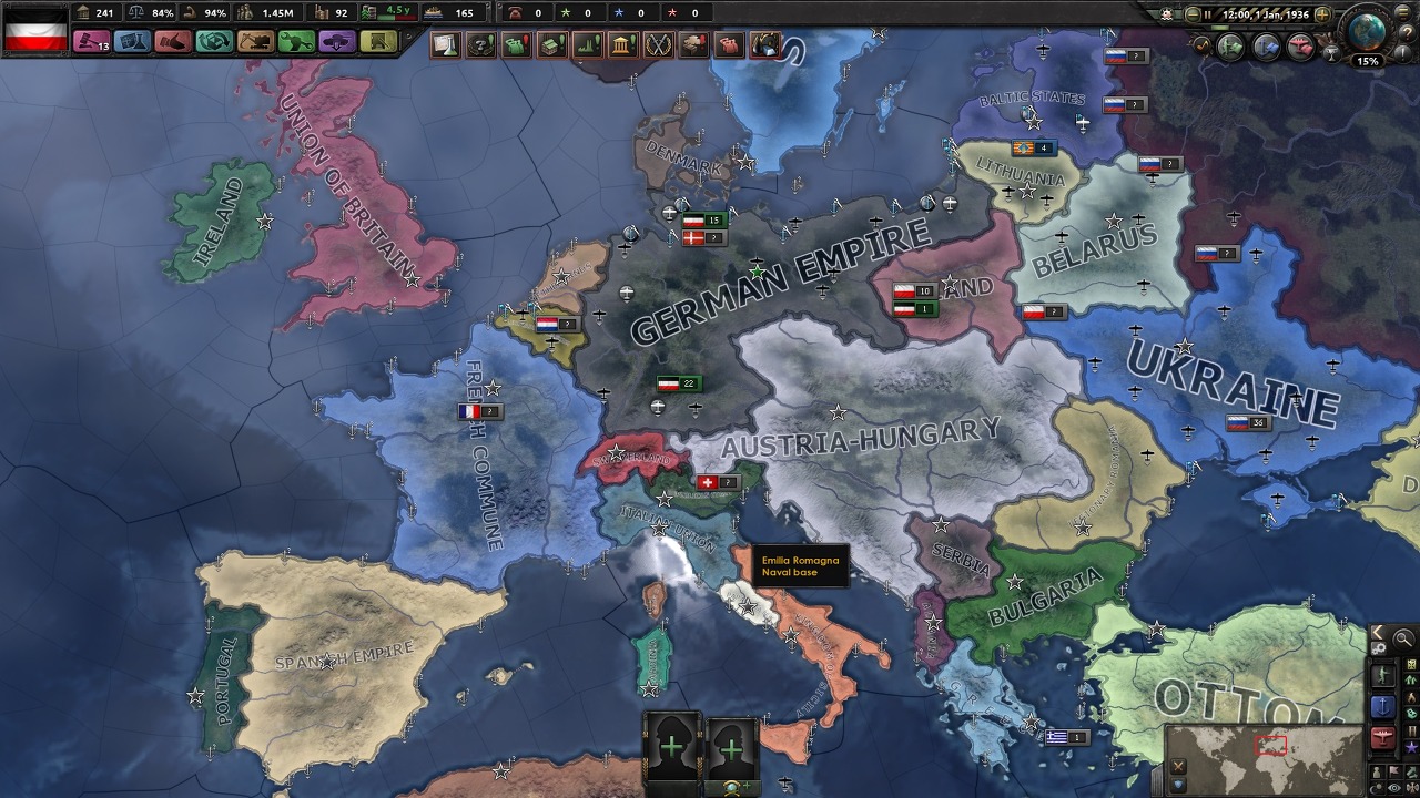 또한 EoanB의 전쟁은 여전히 바닐라 HoI 4의 메커니즘을 다소간 사용하기 때문에 만족스럽지 않습니다. 19세기에 전쟁을 벌이는 것은 20세기에 전쟁을 벌이는 것과 다르지 않기 때문에 아직 해야 할 일이 많습니다. 즉, 이것은 여전히 매혹적인 프로젝트이며 계속 지켜봐야 할 프로젝트입니다!