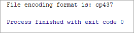 my_file = open(“C:/Documents/Python/test.txt”, mode=”w”, encoding=”cp437”) print(“File encoding format is:”, my_file.encoding) my_file.close() |