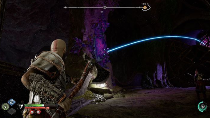 리바이아산(도끼)을 던져 반사시켜 목표물에 맞춘다.