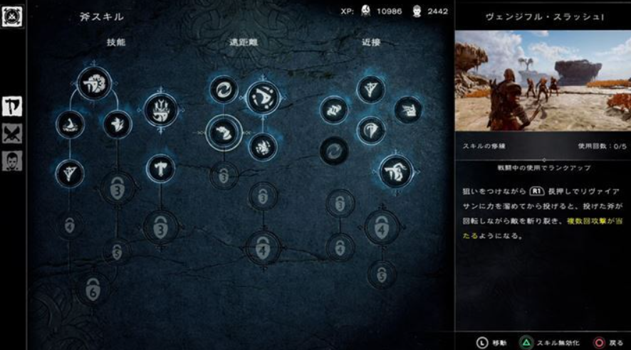 하나는 내보낼 수 있는 기술의 바리에이션 증가다. 리바이아산과 브레이브 오브 카오스, 각각의 스킬 트리는 보다 강화되어 근거리와 원거리, 두 장면에서 파생할 수 있는 기술이 늘었다.