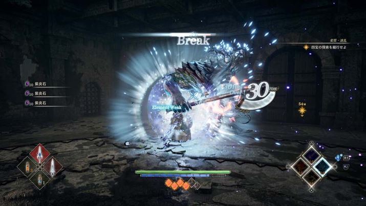 이 게임의 전투는 적의 약점 속성 공격을 이용하여 적을 Break 시키는 것이 중요