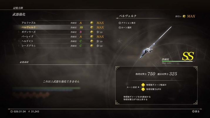 그 밖에는 모든 퀘스트에서 S랭크를 목표로 하는 무기 숙련도를 최대 SSS까지 단련시키는 등의 요소도 있다.