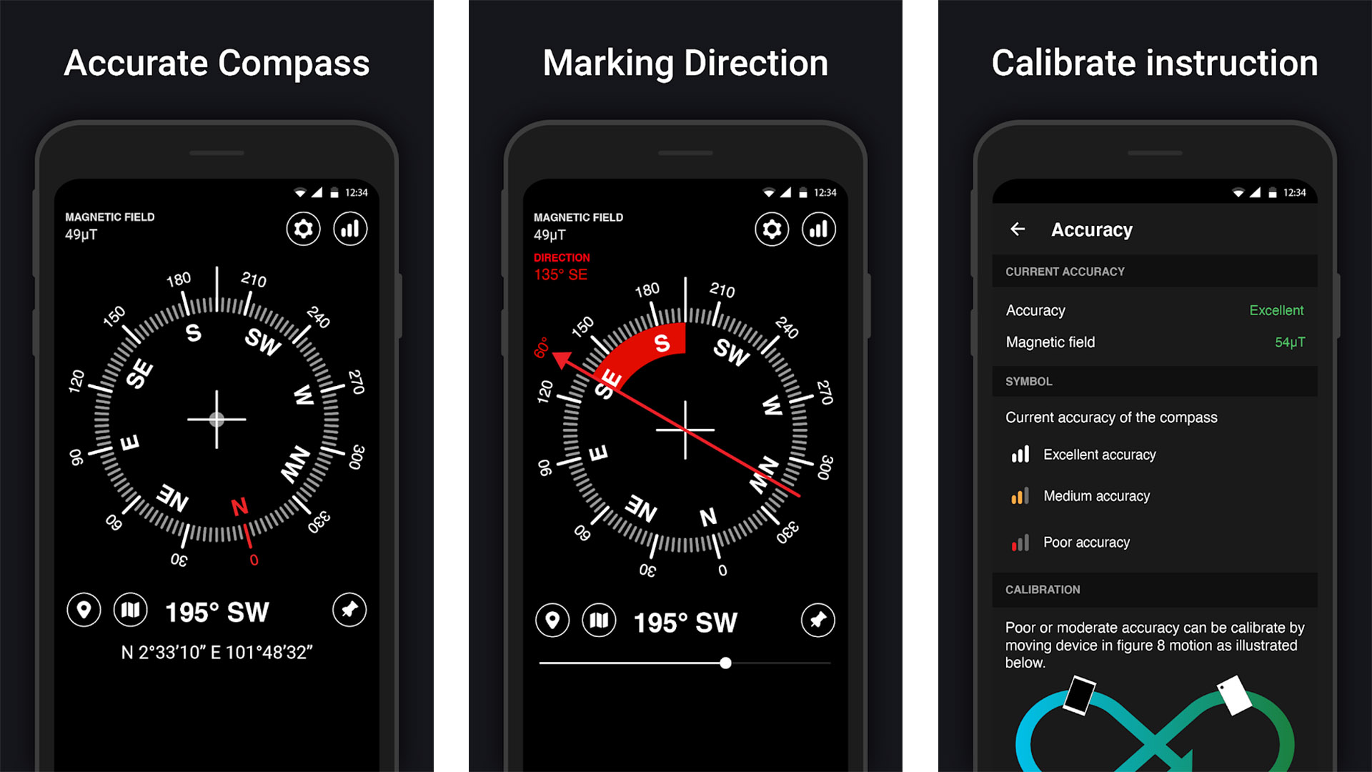 KWT는 디지털 나침반 앱을 제공하는 Google Play의 개발자입니다. 그것은 대부분의 다른 것들처럼 작동합니다. 당신은 그것을 보정하고 그것은 당신에게 방향을 알려줍니다. 그러나 여기에는 경사각, 자기장 강도, 센서 상태 및 기타 잠재적으로 유용한 몇 가지 데이터 포인트도 포함됩니다. 다른 나침반 앱과 같은 실제 주소와 같은 멋진 기능은 없습니다. 그러나 내비게이션 앱은 어쨌든 그런 종류의 일을 더 잘 수행하므로 좋은 기본 나침반 앱에 감사드립니다. 저렴하고 작동하며 UI가 좋아 보입니다.