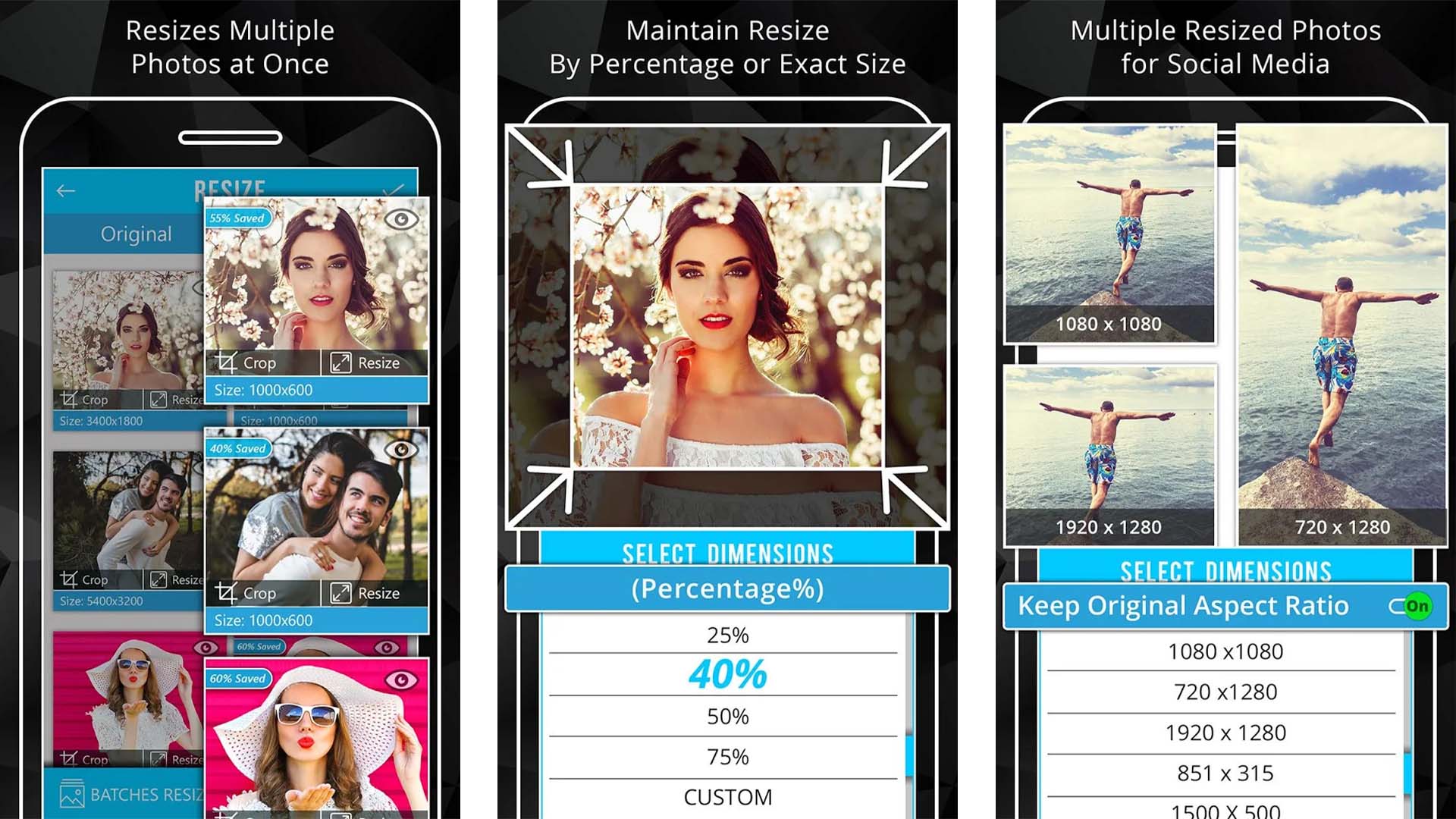 Z Mobile Photo Resizer는 대부분의 경우 잘 작동합니다. PNG 및 JPEG 출력과 다양한 사진 크기 조정 방법을 지원합니다. 예를 들어 가로 세로 비율, 정확한 픽셀 또는 백분율을 사용할 수 있습니다. 또한 이 앱에는 일괄 크기 조정, 자르기 도구, 비파괴 편집(원본 사진은 그대로 유지됨)이 함께 제공되며 앱을 통해 완료되면 이미지를 공유할 수 있습니다. 여기저기서 약간의 제한이 있지만 테스트에서는 잘 작동했습니다.