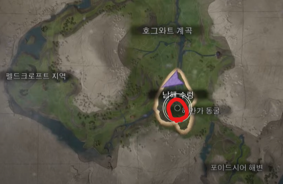 남해수렁 중앙 하단 부근에 니즐의 서식지가 있습니다.
