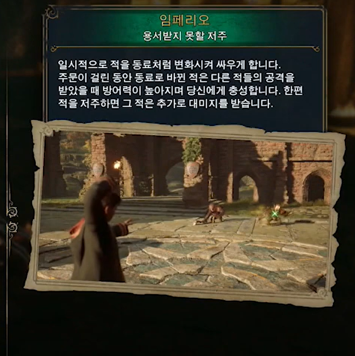 호그와트 레거시 임페리우스 저주(Imperius Curse) 또는 임페리오(Imperio) 는 3가지 '용서받지 못할 저주' 중 하나입니다.