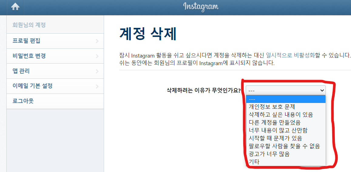 인스타 계정 영구 삭제