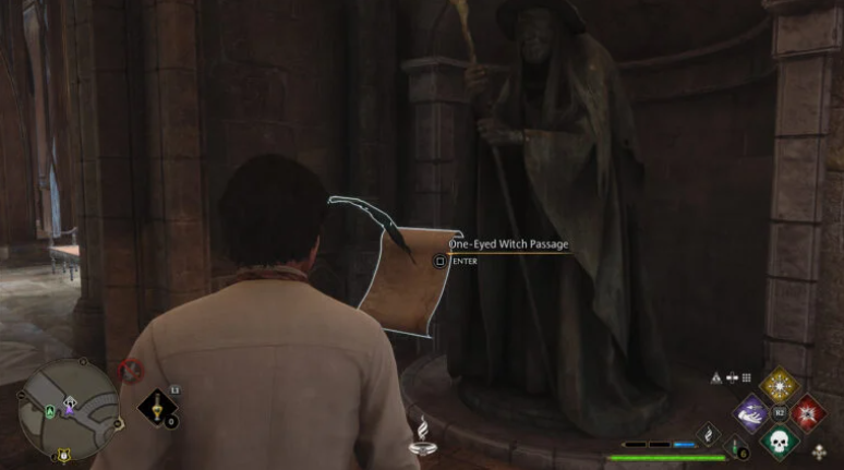 교장실에서 복도 반대편 끝. 호그와트의 비밀 퀘스트를 완료해야 합니다 .