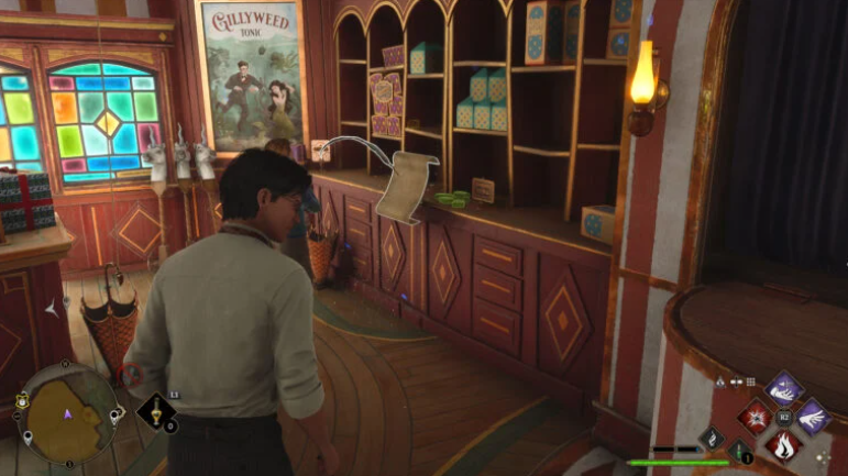 마을의 상인 건너편에 거미 표지판에 Revelio를 사용하십시오.