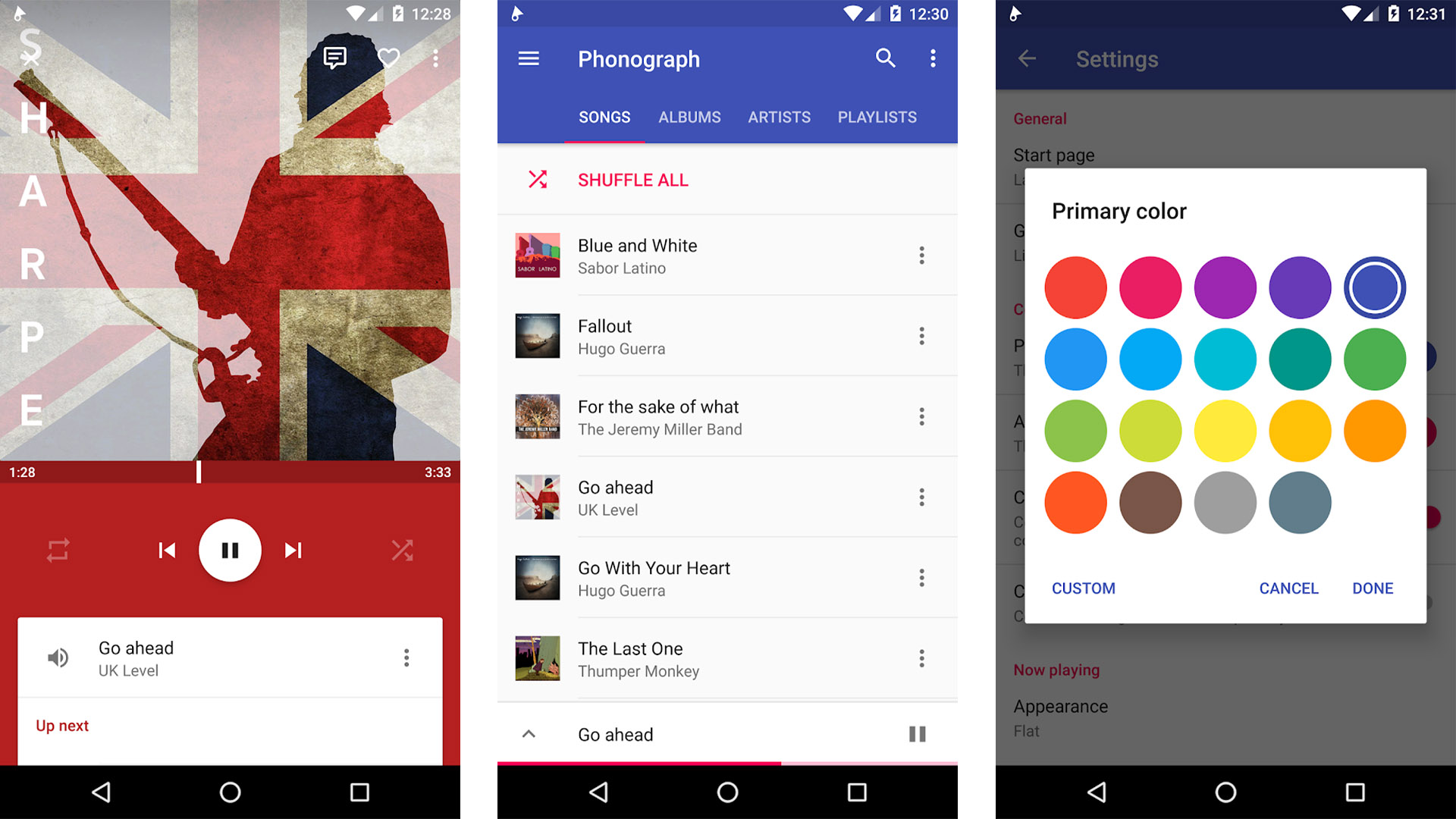 Phonograph는 몇 안 되는 우수한 오픈 소스 음악 플레이어 앱 중 하나입니다. 단순하다고 자부합니다. 가볍고 사용하기 쉽습니다. 대부분의 경우 성공합니다. 클래식하고 단순한 머티리얼 디자인 UI가 특징입니다. 필요에 따라 빠르게 이동합니다. 원하는 경우 테마를 변경할 수도 있지만 테마 편집기가 특별히 강력하지는 않습니다. 이와 함께 Last.FM 통합, 태그 편집기, 재생 목록 기능, 홈 화면 위젯 및 기타 탐색 기능을 사용할 수 있습니다.