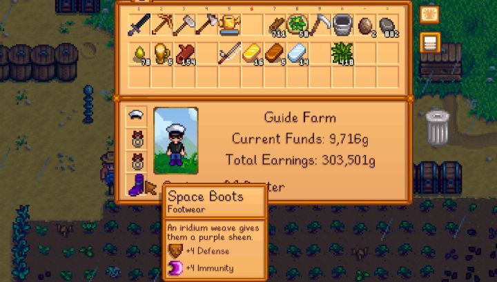 광산을 진행하면서 어떤 몬스터는 당신이 가진 것보다 더 좋은 무기를 떨어뜨리는 것을 발견할 수 있습니다. 하지만 Adventurer's Guild에서 더 좋은 아이템을 찾을 수 있을 것입니다. 그들이 제공하는 무기와 장비의 양은 광산을 더 깊이 파고들수록 증가합니다. 주목할 만한 아이템은 Silver Saber(750g, 레벨 20 도달), Templar's Blade(4,000G, 레벨 55), Steel Falchion(9,000G, 레벨 90), Lava Katana(25,000G, 광산 바닥 도달)입니다. Lava Katana는 Skull Cavern에서 엄청난 도움이 될 것이므로 매우 운이 좋은 Prismatic Shard Drop을 얻지 않는 한 결국 저축하는 것이 좋습니다.