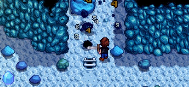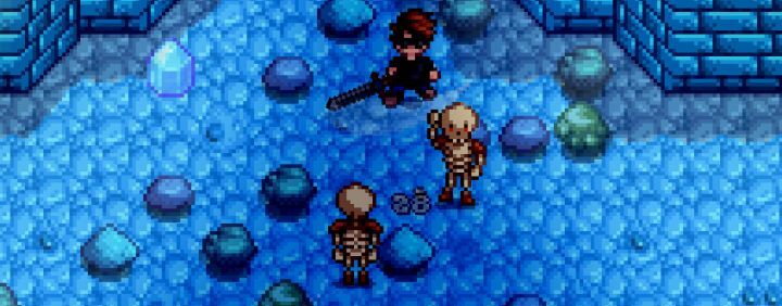 광산에 가면 첫 번째 무기를 얻고 큰 위험 없이 슬라임과 박쥐를 죽일 수 있을 것입니다. 슬라임과 같은 적들은 기절할 수 있는 벽에 고정하여 싸우는 것이 가장 좋습니다. 그것이 불가능할 때, 당신은 단순히 베고, 밟고, 베고 그들의 특별한 점프 공격을 사용하여 그들을 막을 수 있습니다. 많은 몬스터가 넉백에 취약하므로 전투는 매우 간단하고 광산에서 광석을 찾는 데 작은 장애물입니다. 레벨 전투를 원할 것이지만 상당히 자연스럽게 이루어져야 합니다.