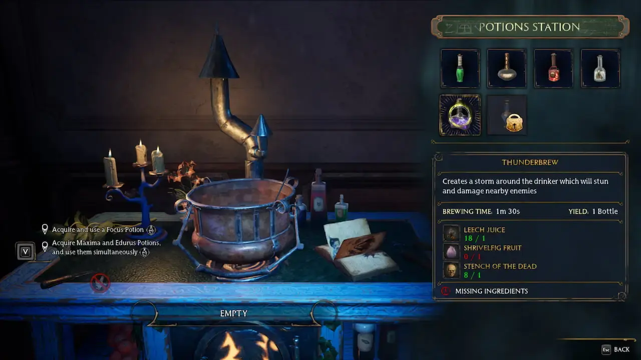 그러나이 물약의 유일한 이점은 아닙니다. 따라서 플레이어는 상황에 맞을 때마다 이 물약을 사용해야 합니다. 하지만 플레이어는 물약을 직접 제조하기 위해 몇 가지 재료를 추적해야 합니다. 이러한 재료는 Leaping Toadstool Caps, Troll Bogeys 및 Knotgrass Sprig입니다. 이렇게 하면 물약을 직접 만들 수 있습니다. Hogsmeade의 Magic Neap에서 팝당 800 Galleons에 이 물약을 구입할 수 있다는 점도 유의해야 합니다. 결론적으로 투명화는 호그와트 레거시에서 여러 가지 일을 할 수 있게 해주는 힘입니다 . 따라서 플레이어는 플레이 시간 내내 이 물약을 가치 있는 만큼 사용해야 합니다.