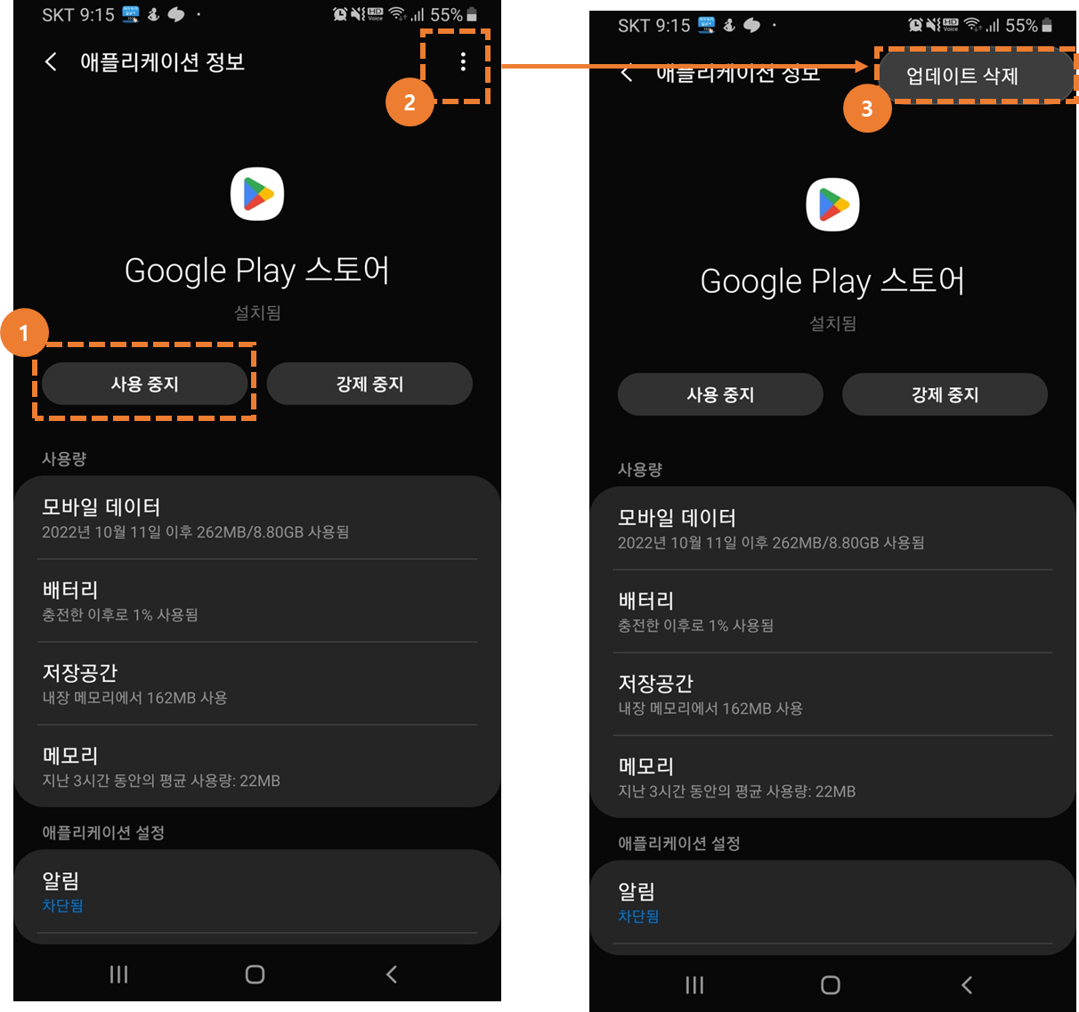 - 구글 플레이 스토어 제거하기 (비활성화 및 업데이트 제거)