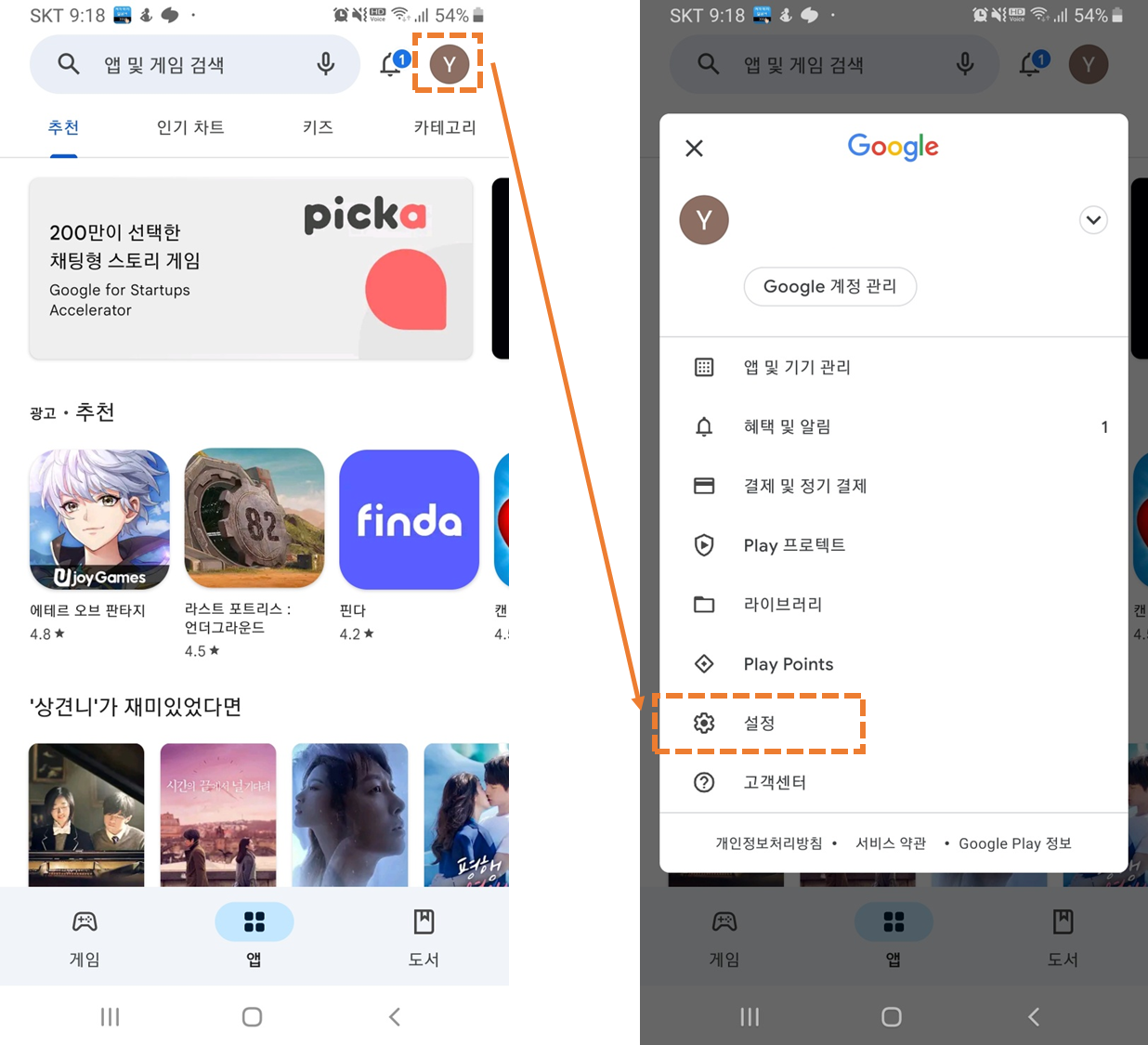 1. 우선, 구글 플레이 스토어 앱을 열고,
