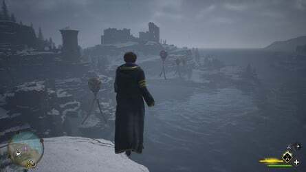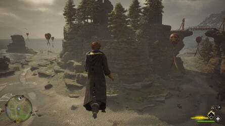 Hogwarts 남쪽 출구 Floo Flames에서 남쪽을 보면 언덕 위 공중에 떠 있는 풍선을 볼 수 있습니다.