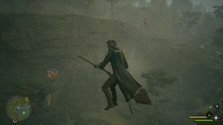 East North Hogwarts Region Floo Flames에서 서쪽으로 비행합니다. 언덕 위를 떠다니는 풍선을 볼 수 있습니다.
