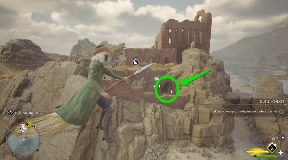 Henrietta's Hideaway 입구는 지도에 표시된 대로 Clagmar Castle Floo Flame 서쪽 폐허의 주요 지역 아래에 있습니다 .