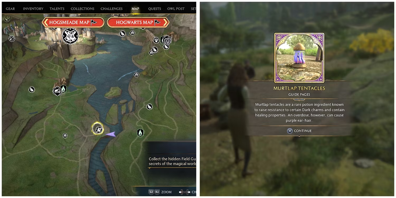 플레이어는 총 8개의 필드 가이드 페이지를 호그와트 계곡에서 찾을 수 있습니다 .