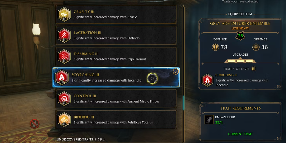 인센디오는 호그와트 레거시에서 빌드된 주요 주문이 될 것이기 때문에, 플레이어는 해당 특성을 획득하여 더욱 향상시킬 수 있습니다. 그것은 스코칭이라고 불리며 각 레벨마다 인센디오의 피해를 증가시키는 세 가지 레벨이 있습니다. 레벨 3 특성을 장착하려면, 플레이어는 호그와트 레거시에서 니즐 동물에서 얻을 수 있는 니즐 모피를 사용해야 합니다.