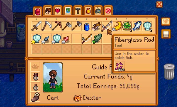 먼저 대나무 낚싯대에는 미끼나 낚시 도구를 넣을 수 있는 슬롯이 없다는 점을 알아두세요. 더 나은 막대에는 이러한 기능이 있습니다. 미끼를 사용할 수 있는 기능은 레벨 2 낚시와 함께 제공되며, 이는 Will이 해변가에 있는 상점에서 유리 섬유 낚싯대를 1,800G에 판매하도록 합니다(사용 가능하다는 편지를 받아야 함). 레벨 2 낚시에서 자신만의 미끼를 만드는 방법을 가르쳐주지만 그곳에서 미끼를 저렴하게 구입할 수도 있습니다.