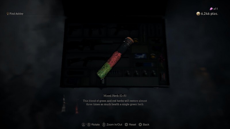 초록색(체력 회복), 빨간색(다른 약초의 효과 강화), 노란색 약초(최대 체력 증가)를 수집하다 보면 긴장된 상황에서 치료에 사용하고 싶은 유혹을 느낄 수 있습니다. 전적으로 괜찮고 이해할 수 있지만 도움이 될 수 있다면 대신 들고 있던 응급 처치 스프레이를 사용할 수 있습니다.