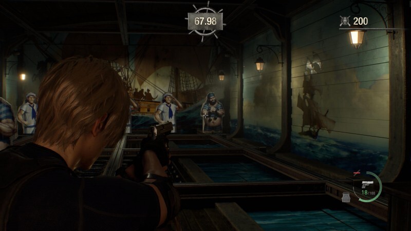 이번 리메이크의 사격장은 원작과 조금 다릅니다. 레지던트 이블 4 전체에서 몇 번, 상인 뒤에 엘리베이터가 보일 것입니다. 안쪽으로 들어가면 사격장으로 이동합니다. 여기서 상인은 여러분이 완료할 수 있는 독특한 사격장 미니 게임을 만들었습니다.