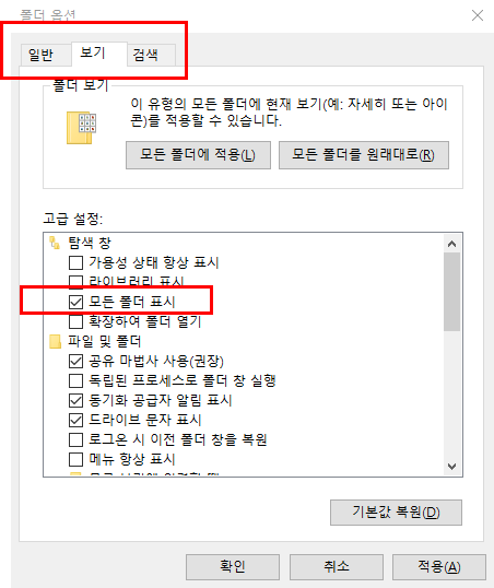 방법 #2 - 폴더 옵션 수정