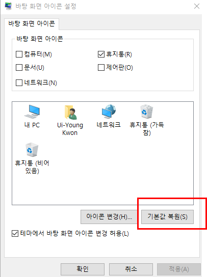 3. [바탕화면 아이콘 설정] 클릭