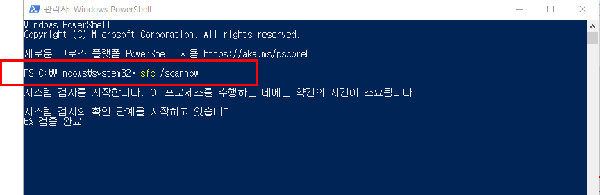 방법 #4 - 시스템 파일 검사기 (SFC) 점검 및 복구