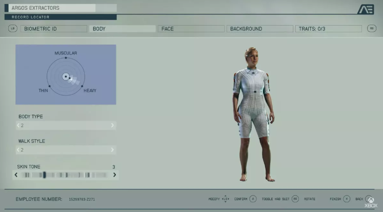 스타필드가 처음 발표되었을 때 Bethesda는 원하는 캐릭터를 만들 수 있다고 말했고 우리도 그렇게 할 수 있을 것 같습니다. 게임 플레이 쇼케이스에서 우리는 스타필드의 캐릭터 생성을 살펴보게 되었는데, Todd Howard는 이것이 "지금까지 가장 유연하다"고 말했습니다. 다양한 옵션을 제공하는 것으로 보이는 슬라이더가 장착되어 있어 "외모의 모든 요소"를 사용자 지정할 수 있습니다. 지금까지 살펴본 것 중 체형, 걸음걸이, 피부톤, 헤어스타일, 머리색, 눈동자 등을 변경하고 커스터마이즈할 수 있는 기능이 있습니다.