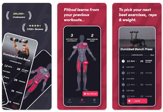 운동 계획을 자동으로 생성해주고, 운동 일지를 기록하여 맞춤형 훈련 프로그램을 제공하는 앱입니다. : Fitbod는 사용자의 운동 경험과 목표를 고려하여 맞춤형 운동 계획을 자동으로 생성합니다. 또한, 운동 일지와 통계를 제공하여 진척 상황을 추적하고 효과적인 훈련을 할 수 있도록 도와줍니다.
