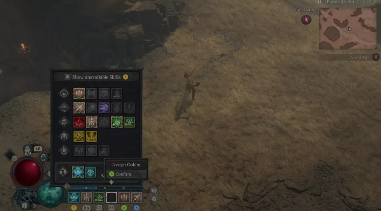 디아블로 4 (Diablo 4)에서 골렘을 소환하려면 해당 능력을 활성화해야 합니다. 즉, 활성 스킬 막대에서 골렘 능력을 교체하면 골렘이 사라집니다. 골렘이 잠금 해제된 후 할당하려면 먼저 스킬 메뉴(키보드의 S 또는 컨트롤러의 시작 버튼)를 열어야 합니다. 일단 거기에 도착하면 PC에서 해야 할 일은 골렘 정지 상태를 핫 바로 드래그하는 것입니다. 콘솔에서는 스킬 메뉴 내에서 왼쪽 스틱을 쳐서 다른 능력처럼 지정해야 합니다.